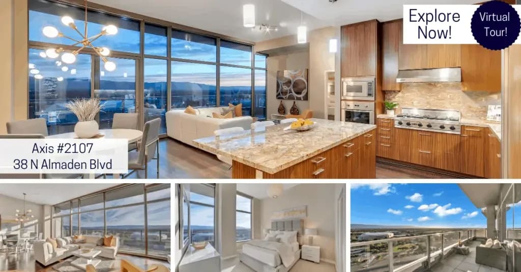 Gorgeous penthouse condo with spectacular views overlooking Silicon Valley. Have your own private view and watch as the Google Village Diridon West project emerges! Executive penthouse condo on the 21st floor of the desirable luxury Axis high-rise building. Kitchen upgraded with Viking gas cooktop and oven, Subzero built-in refrigerator, and Bosch dishwasher. The large center island is ideal for entertaining and offers plenty of countertop and cabinet space. Large master bedroom suite with walk-in closet and en suite bathroom. Enjoy the outdoor fresh air and views from your private balcony that runs the span of the condo. Community features include concierge service, fitness center, entertainment lounge, pool and hot tubs, and outdoor entertainment area. Fantastic location is walking distance to San Pedro Square, SAP Center, Diridon Station, restaurants, shops, and the future Google Diridon West project.