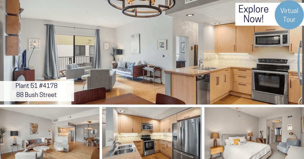 Fantastic 2-bedroom condo at the highly desirable Plant 51. Enjoy vaulted ceilings and stunning natural light from the top floor in this quiet, courtyard facing unit. High end finishes and upgrades include wood floors in living areas, wool carpets in bedrooms, custom paint, high end lighting, custom master bath shower doors, master closet organizer, custom kitchen backsplash, granite counters, SS appliances, A/C, NEST thermostat, full size washer/dryer, updated door handles, and more. The home also features a private balcony with foothill views. Plant 51 offers impressive amenities with a fully equipped fitness center, community lounge w/pool table, business center, BBQ area, and a fire pit. Ideal location for commuters riding Caltrain or VTA Lightrail, adjacent to Cahill Park, and down the street from Whole Foods. Easy walking distance to the SAP center, San Pedro Square and other downtown restaurants and entertainment! Also located adjacent to the proposed Google downtown campus.